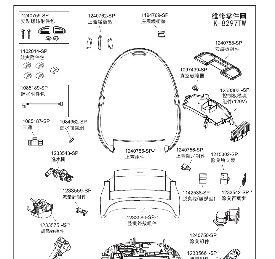 KOHLER 電腦馬桶蓋專用零件目錄